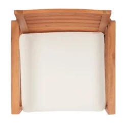 Designed for the modern host, this deluxe contemporary outdoor dining set is a great value. Constructed with natural eucalyptus wood, its four chic chairs include complimentary cushions, and its matching generous table is perfect for dining in style. This five piece entertaining set is a lovely choice to serve your guests with style.