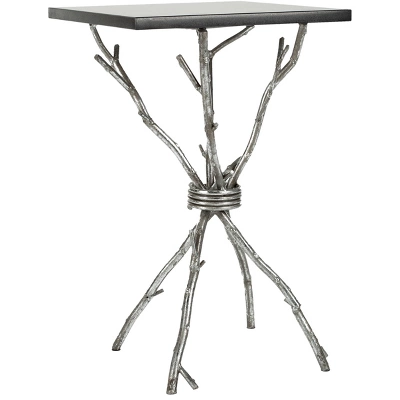 Bare winter branches distinguish this exquisite Alexa Accent Table from other ordinary furnishings. Artfully crafted with a granite top and a metallic finish on its natural inspired legs, Alexa brings a touch of organic style to glamorous room furnishings. Care Instructions: Dust regularly with a soft, dry cloth. Never use oiled or treated cloths on lacquered finishes. Some finishes can be wiped with a damp (not wet) cloth, followed at once by rubbing with a dry cloth to remove fingerprints and smudges. For persistent spots, gently clean with a soft cloth and a solution of water and mild soap, make sure to wipe dry. Use adhesive felt pads, coasters and placemats to protect your furniture.
