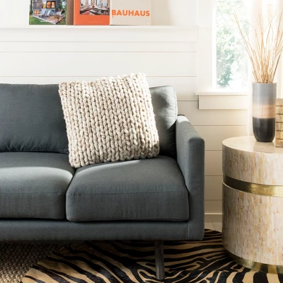 You’ll want to run your fingers through every cushioned nook and cranny of the All Over Braid pillow. The ideal accent accessory for the living room, family room or bedroom with bulging braids of handloom wool, colored in natural taupe, adding comforting texture and decor friendly color to the couch, loveseat or headboard. The solid cotton canvas back comes with a handy hidden zipper for easy access to the feather filled insert. Care Instructions: Pillows tend to flatten during transit, but these tips should help you get that pillow into its fluffiest shape quickly!Once unpacked, gently knead the pillow to help loosen the fibers. Throw the pillow in a dryer on a low tumble setting. The most important tip is to include a sock stuffed with a tennis ball to help “beat” the pillow into its fluffy form. Remove from the dryer, and proudly display your new piece of couch art!