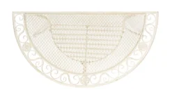 Transform any outdoor space into an entertaining oasis for family and friends with this Genson End Table. Genson’s Victorian-inspired scrollwork and fine Baroque details lend it a rich, classic ambiance, while its two tiers and demilune design make Genson the ideal space-saving solution. Care Instructions: Store outdoor furniture indoors or cover well when not in use. Remove wooden furniture from standing water. Dust regularly with small brush or vacuum. Spills should be taken care of immediately before they harden or stain with a slightly dampened sponge. Do not use bleach solutions.