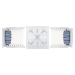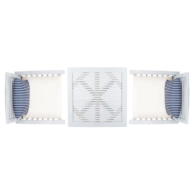 The hottest rooftop bars in Palm Springs inspired this 3 piece bistro set. Crafted in a sleek gray finish, its contemporary bar height table and matching chairs with beige upholstery and navy striped pillows lend instant style to any outdoor terrace or entertaining area. This bistro set adds a fresh look to any outdoor space.