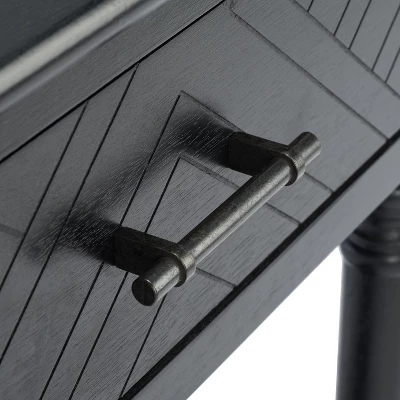 This Peyton Console is at once understated yet sophisticated, making it ideal for today’s classic contemporary décor. Peyton’s open bottom shelf provides ample display space, while the oversized herringbone pattern on its two drawers gives a modern touch to Peyton’s carved wooden accents. Care Instructions: Dust regularly with a soft, dry cloth. Never use oiled or treated cloths on lacquered finishes. Some finishes can be wiped with a damp (not wet) cloth, followed at once by rubbing with a dry cloth to remove fingerprints and smudges. For persistent spots, gently clean with a soft cloth and a solution of water and mild soap, make sure to wipe dry. Use adhesive felt pads, coasters and placemats to protect your furniture.