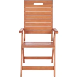 Relax, unwind and daydream in this chic contemporary folding chair. Designed with natural eucalyptus wood, its clean lines and smart cut-out handle makes carrying and folding a breeze. Designers buy them in pairs to create an instant outdoor living room. Care Instructions: Store outdoor furniture indoors or cover well when not in use. Remove wooden furniture from standing water. Dust regularly with small brush or vacuum. Spills should be taken care of immediately before they harden or stain with a slightly dampened sponge. Do not use bleach solutions.