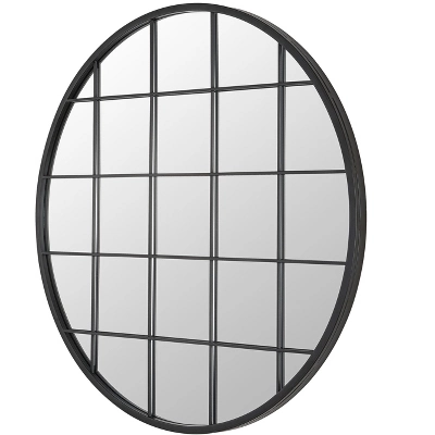 Give your décor a touch of geometric intrigue with this Simmie Mirror. Designed with a black grid overlay over its shining mirror base, Simmie brings delightful decorative depth to any contemporary interior. Care Instructions: Dust with a soft, dry cloth. Do not use abrasive cleaner. To clean mirror, spray a small amount of glass cleaner onto a lint-free cloth and wipe mirror clean.