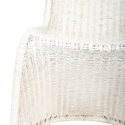 This contemporary wicker side chair is reminiscent of Verner Panton’s Danish design classics. Crafted in a neutral shade of white, its modern curves and geometric weave pattern bring an elevated sensibility to the well appointed residence. Sold in sets of two. Care Instructions: Dust regularly with a soft, dry cloth. Never use oiled or treated cloths on lacquered finishes. Some finishes can be wiped with a damp (not wet) cloth, followed at once by rubbing with a dry cloth to remove fingerprints and smudges. For persistent spots, gently clean with a soft cloth and a solution of water and mild soap, make sure to wipe dry. Use adhesive felt pads, coasters and placemats to protect your furniture.